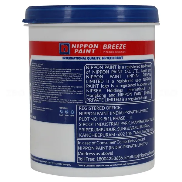 | Packed By | Nippon Paint (India) Private Limited. Plot No. K-8(I), Phase-II, Sipcot Industrial Park, Mambakkam Village, Sriperumbudur, Sunguvarchatiram, Kancheepuram, Tamil Nadu - 602106. |