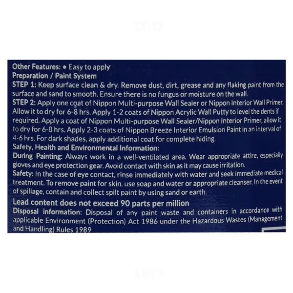 Nippon Paint Breeze is an economy interior emulsion that provides a smooth finish. It contains low VOC and is odourless. It delivers an exceptional by covering any strain or spot on wall surface.