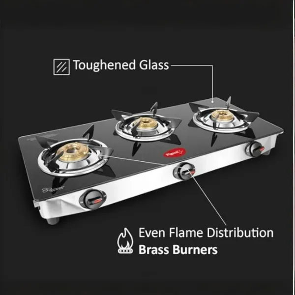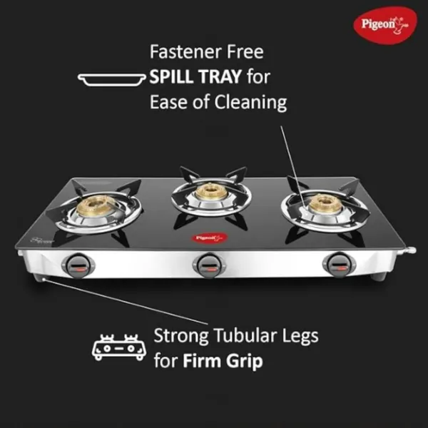Pigeon Glasstop Ayush 3 Burner Manual Gas Stove